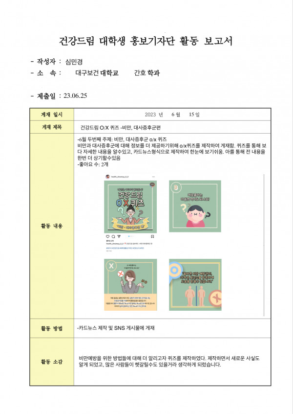 2023 건강드림 대학생 홍보기자단 6월 2차시