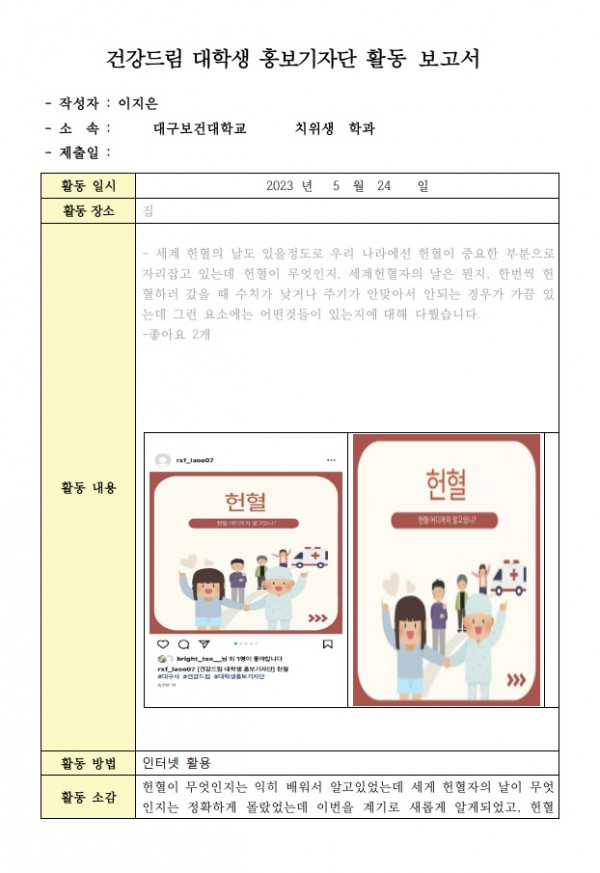 헌혈의 정의, 세계 헌혈자의날, 헌혈주기와 조건에 대해 기술하였습니다.